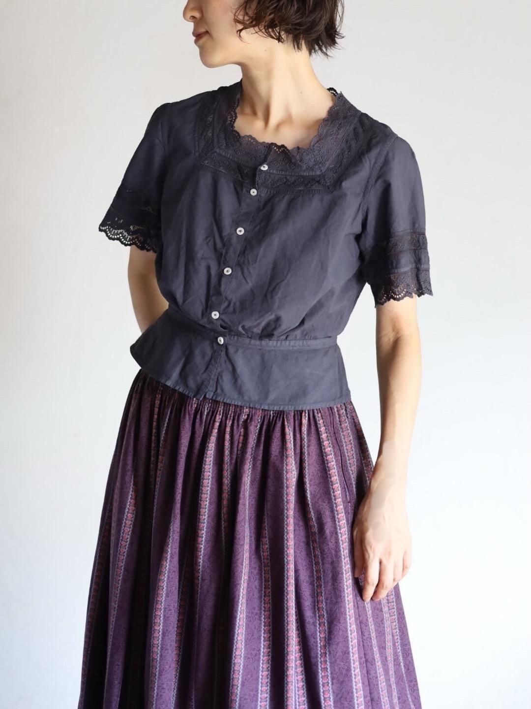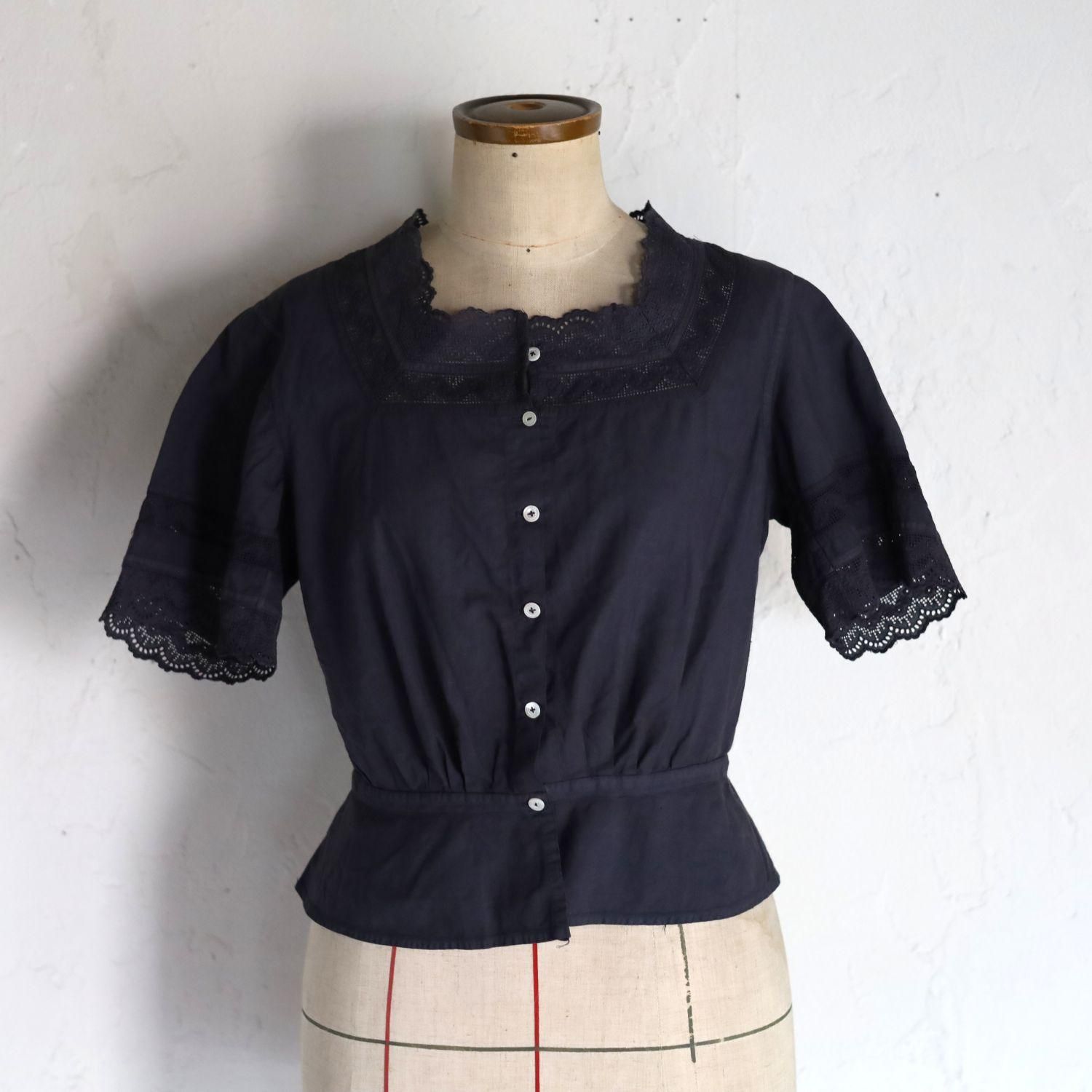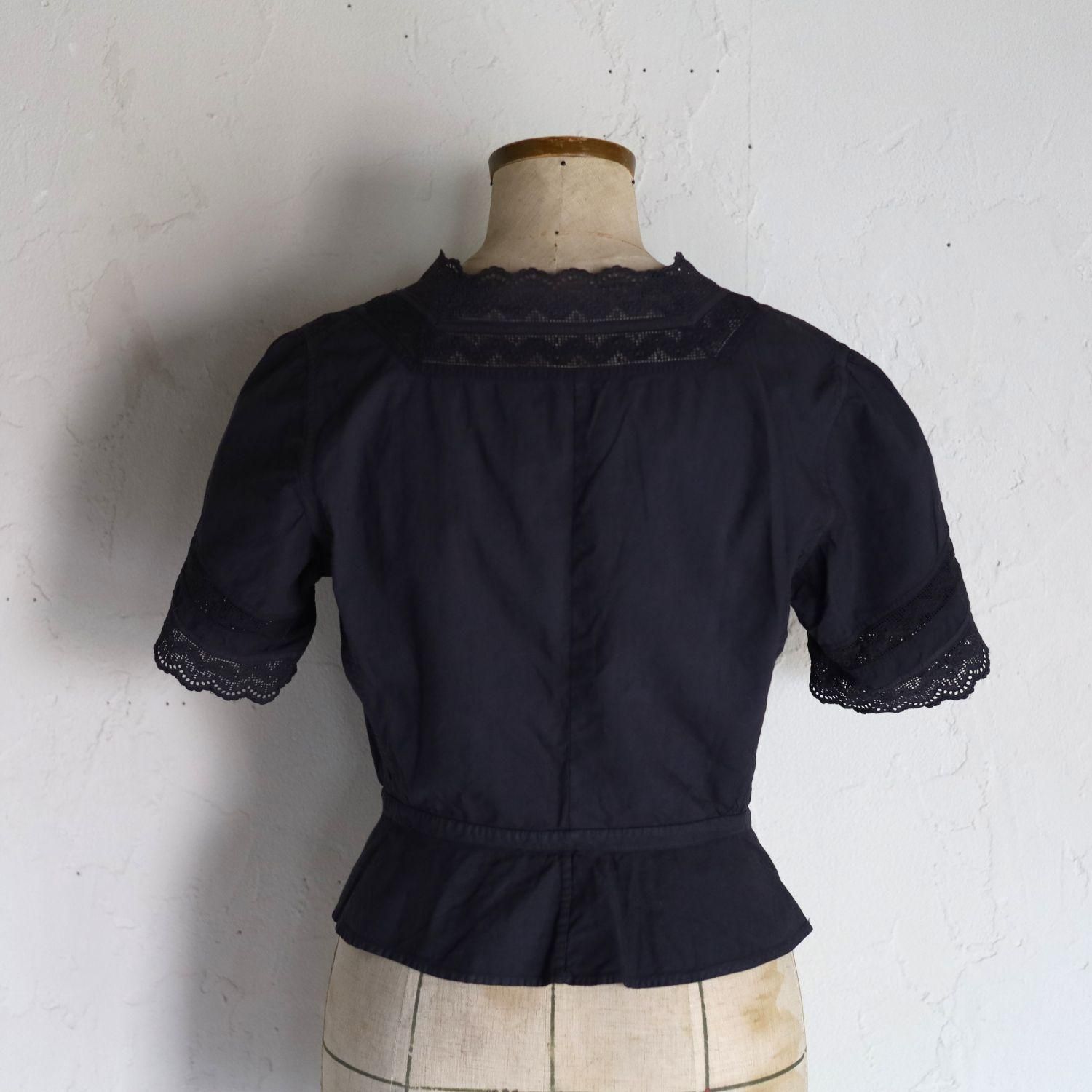 early 20th c. cotton blouse from FRANCE /ショートスリーブの後染めブラウス