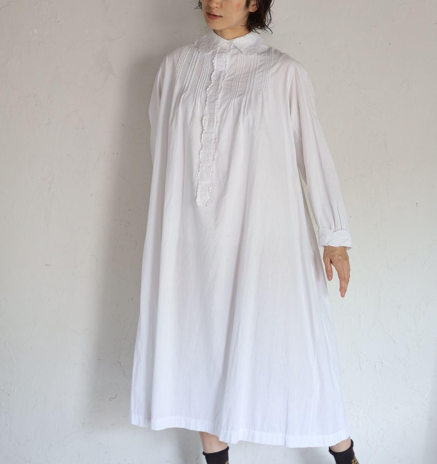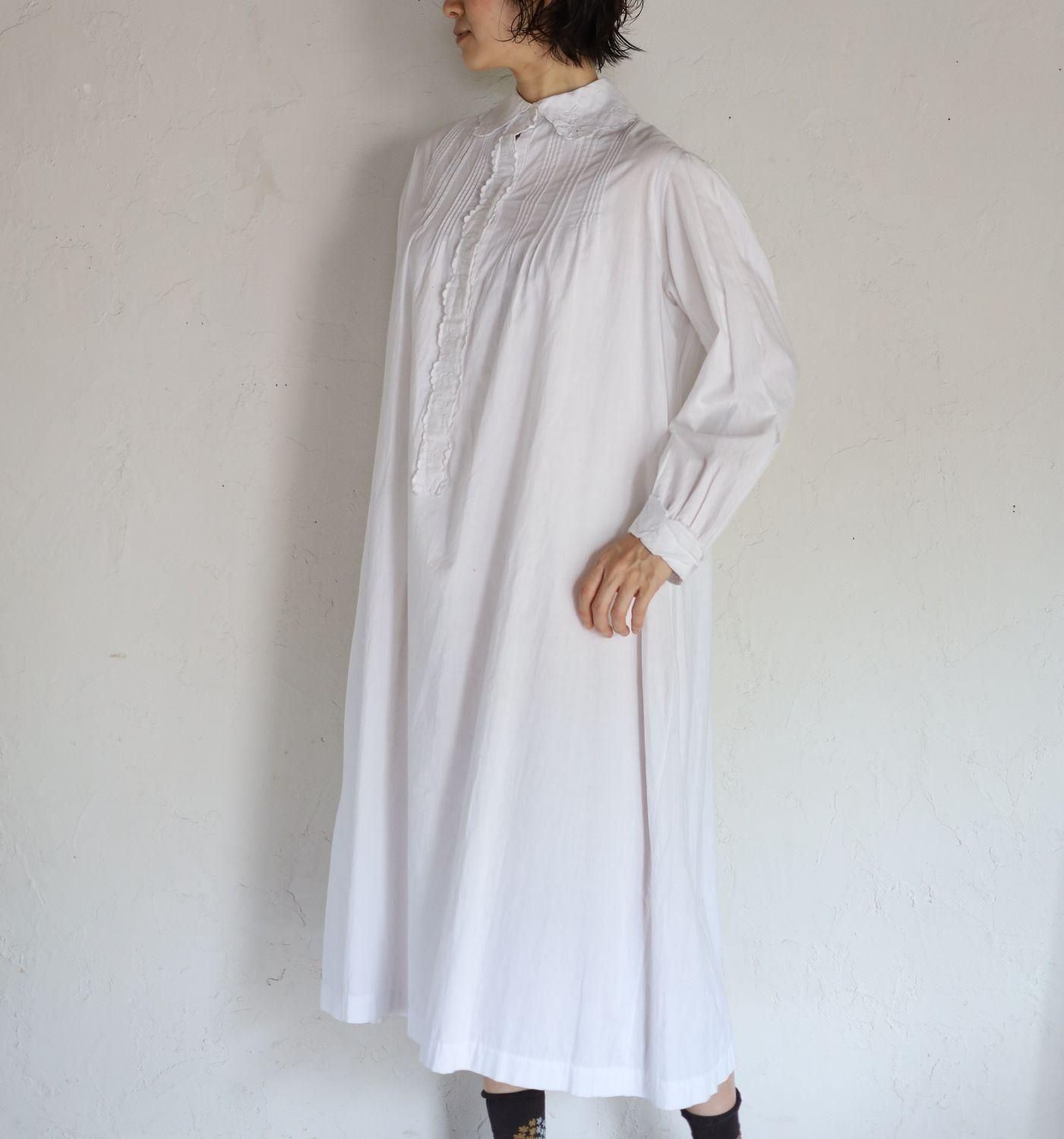 vintage cotton dress from FRANCE /花模様の手刺繍ワンピース