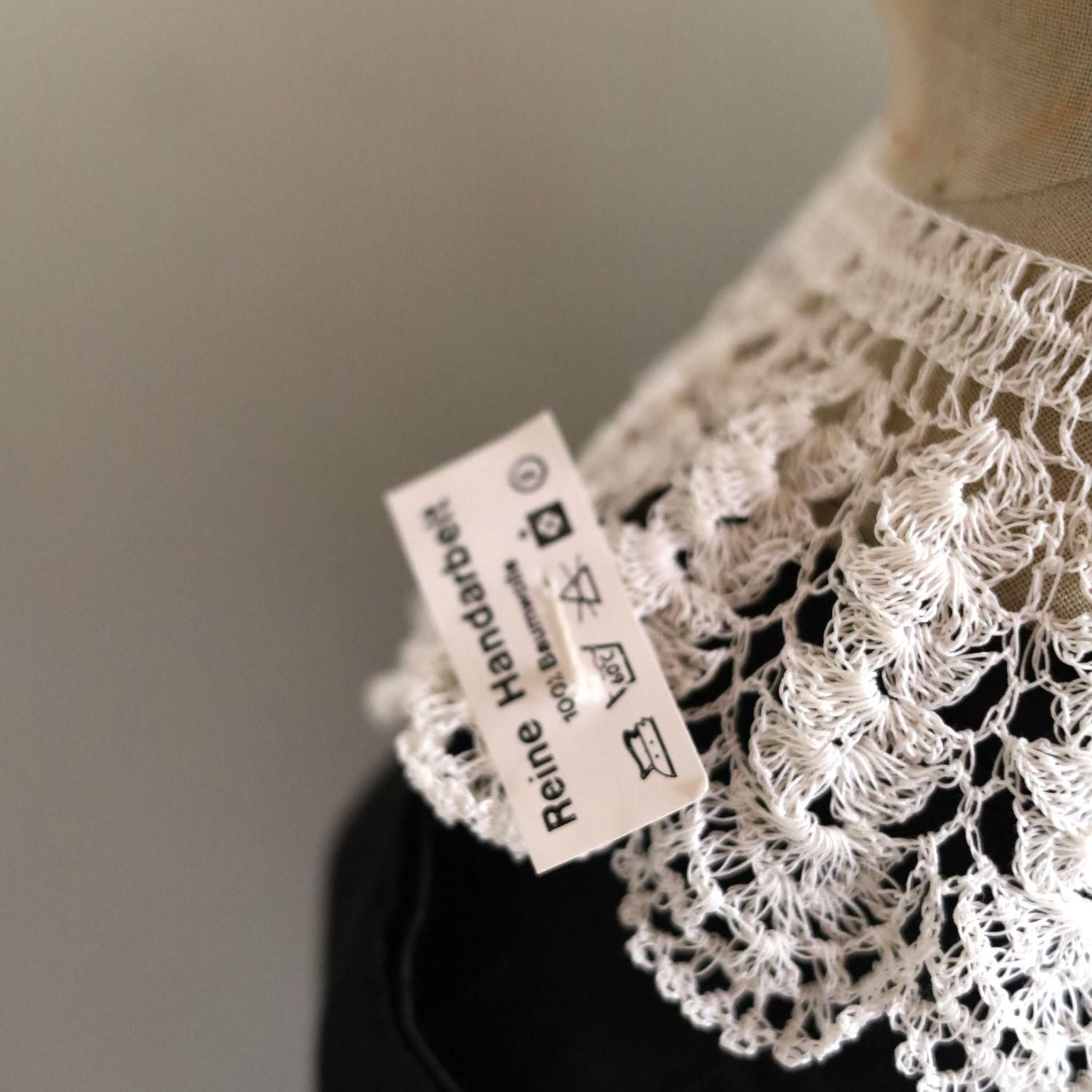 デッドストックの手編みレースのつけ襟。ボタン部分もレースで包まれていて、とても繊細な作りです。おそらくドイツかオーストリアの60年代頃のもの。ブラウスでもニットでも相性良く、華やかな印象に。